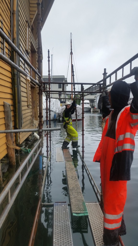 Varierte stillasmonteringoppgaver, da vi må dykke ned på bunnen for å montere stillas i gavl.